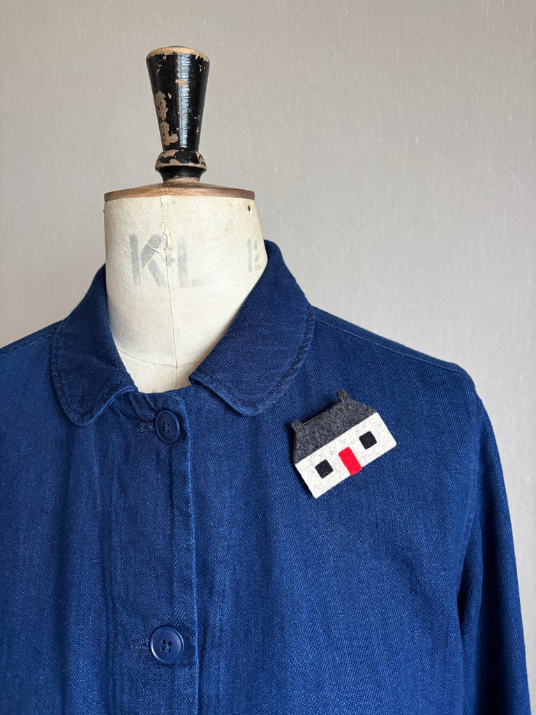 It's a sweet little croft cottage (known in Scotland as a But 'n' Ben) that looks great on a coat or jacket or your favourite knitwear .