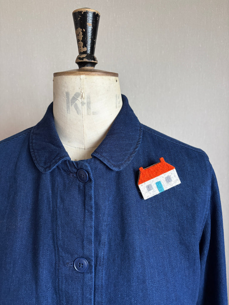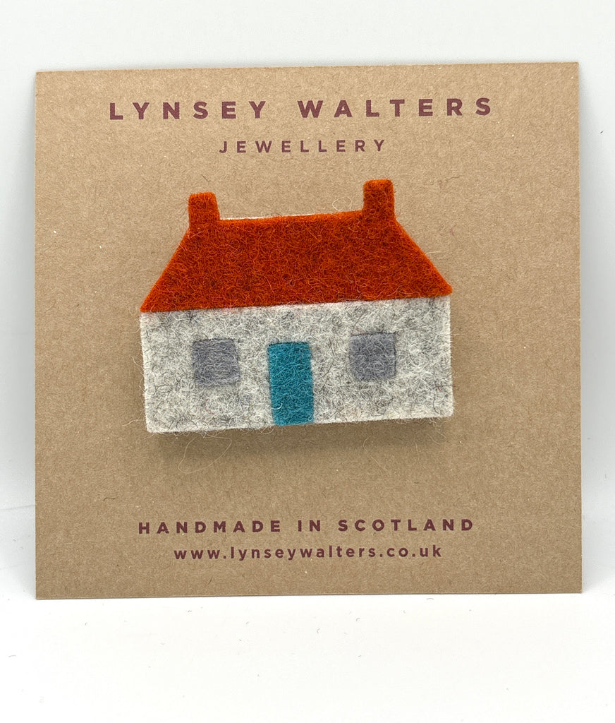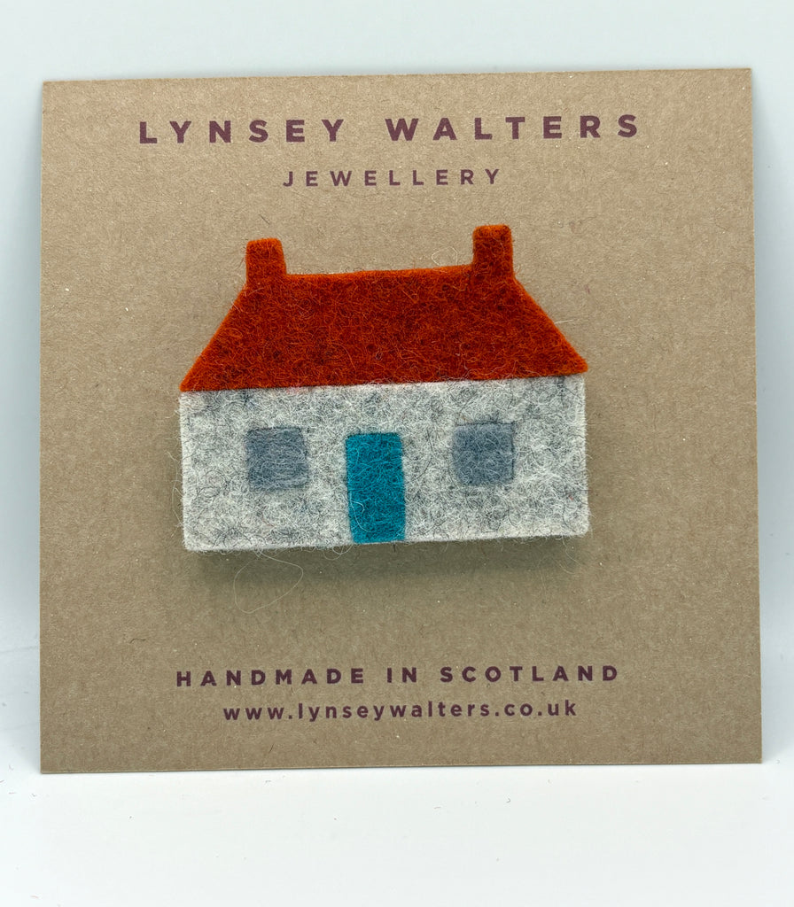 It's a sweet little croft cottage inspire by the East Neuk fishing cottages near wear I live, it looks great on a coat or jacket or your favourite knitwear .