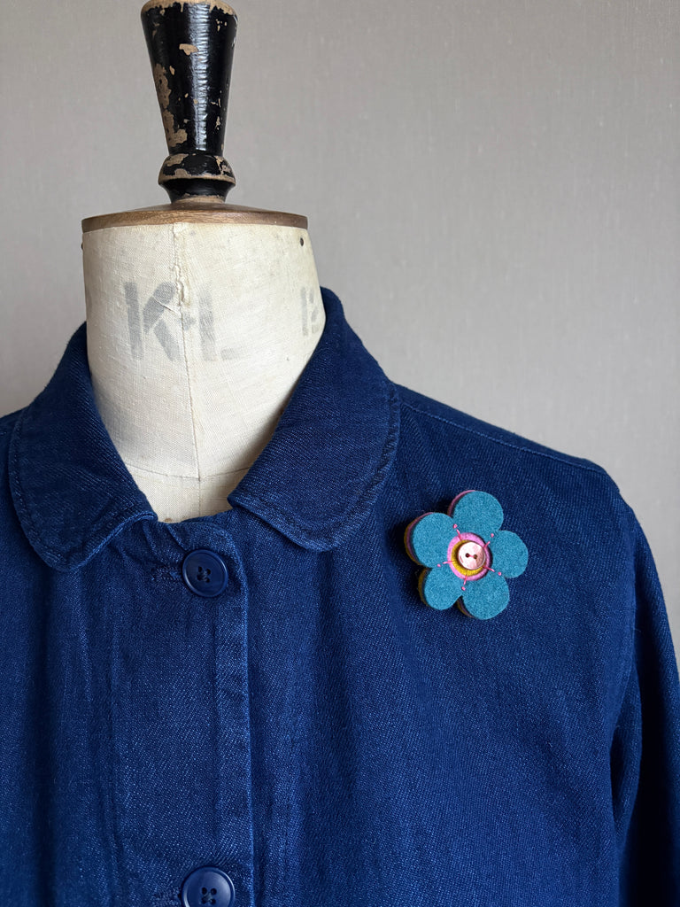 It's made up of 3 layers of wool industrial felt with and added shell button and finished with some stitching for a folksy feel.